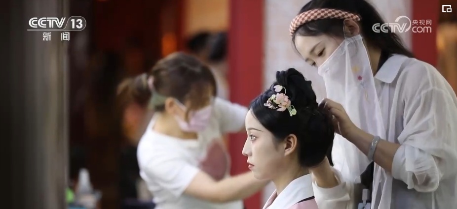 除了妆造师,国风服饰的火热还催生了像跟拍师、簪花制作师等新兴职业。古城里,登记在册的摄影师从之前的几十名增加到了800多名。