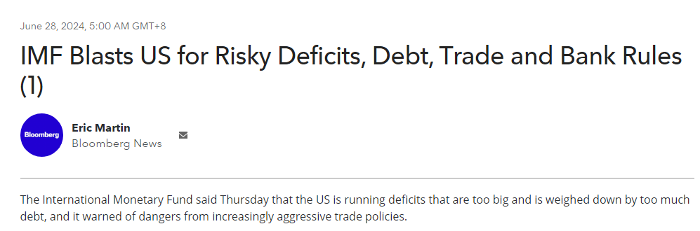 IMF的报告指出,美国政府财政赤字过大,导致联邦公共债务占国内生产总值(GDP)的比重持续上升。