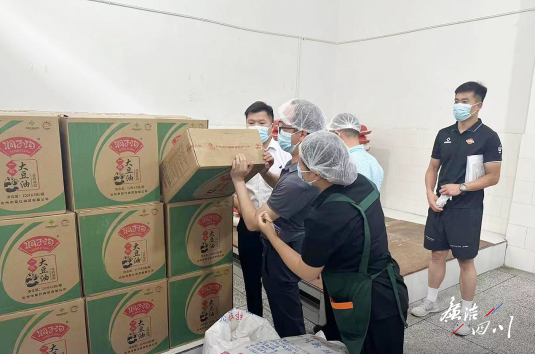 近日,雅安市“校园餐”突出问题专项整治工作专班在雅安中学对食堂大宗物资采购情况进行监督检查。(徐婷 摄)