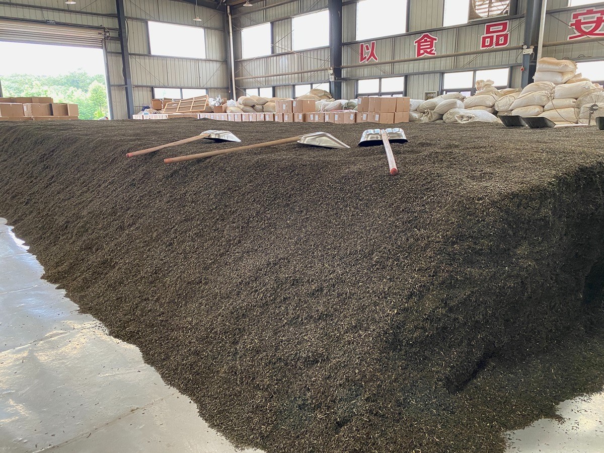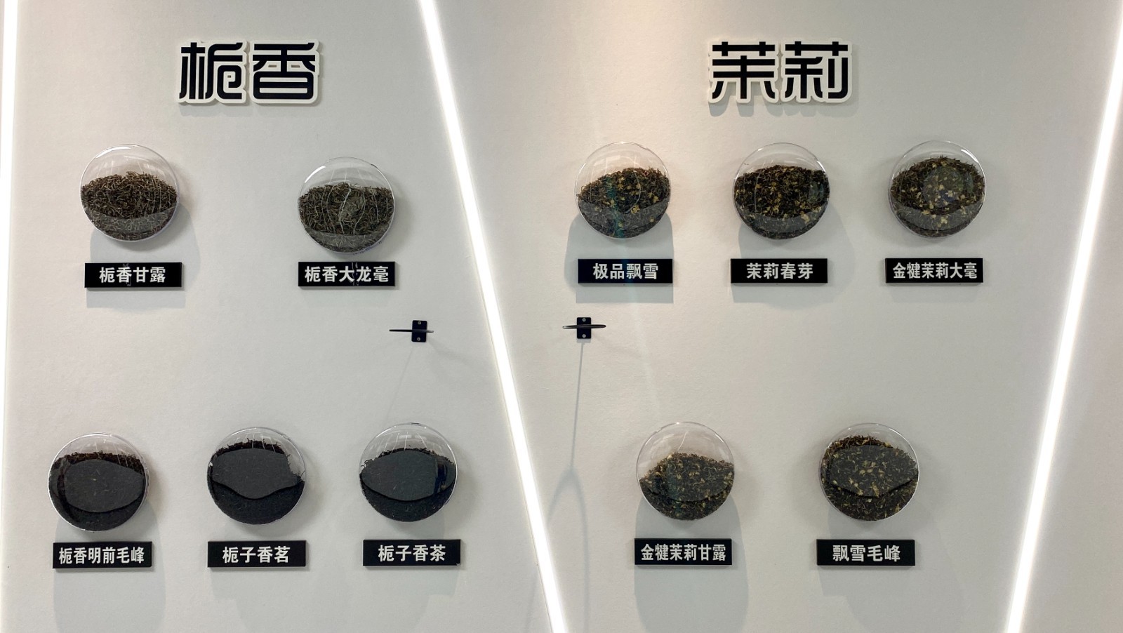 窨制好的栀子花茶堆成小山,等待打包发货。