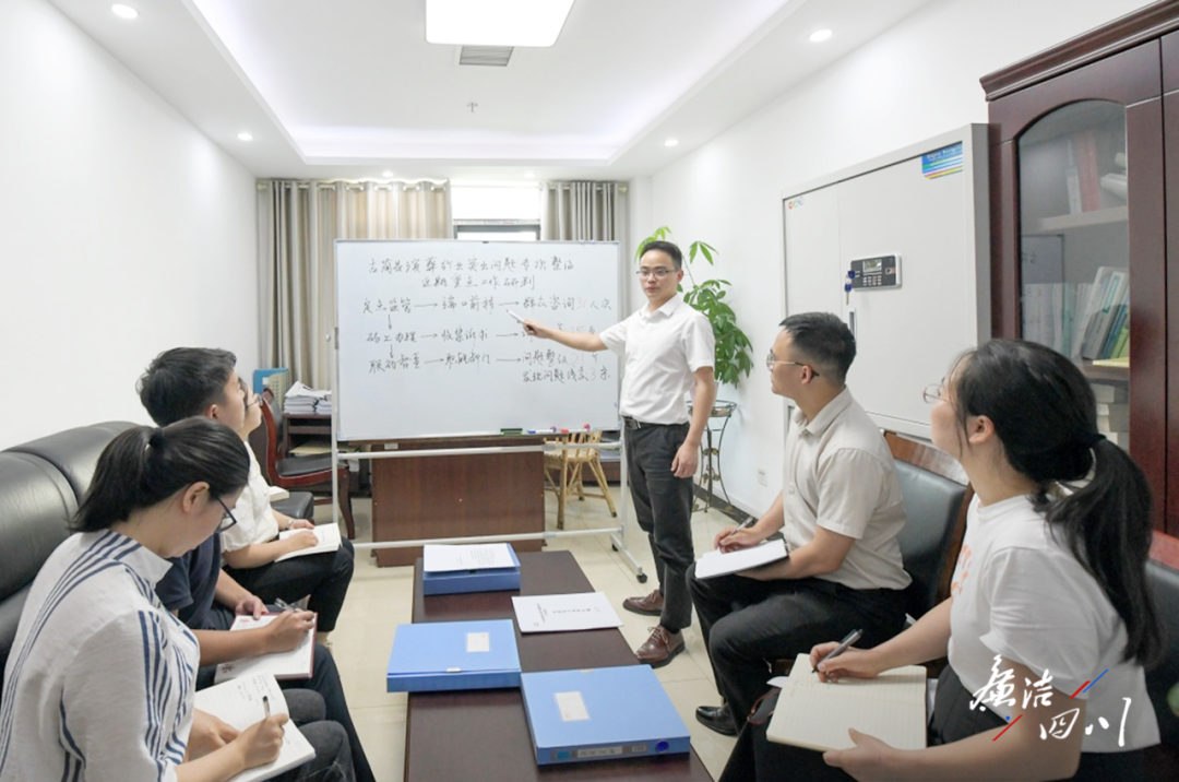 古蔺县纪检监察干部对近期重点工作进行分析研判。(苏海鹏 摄)