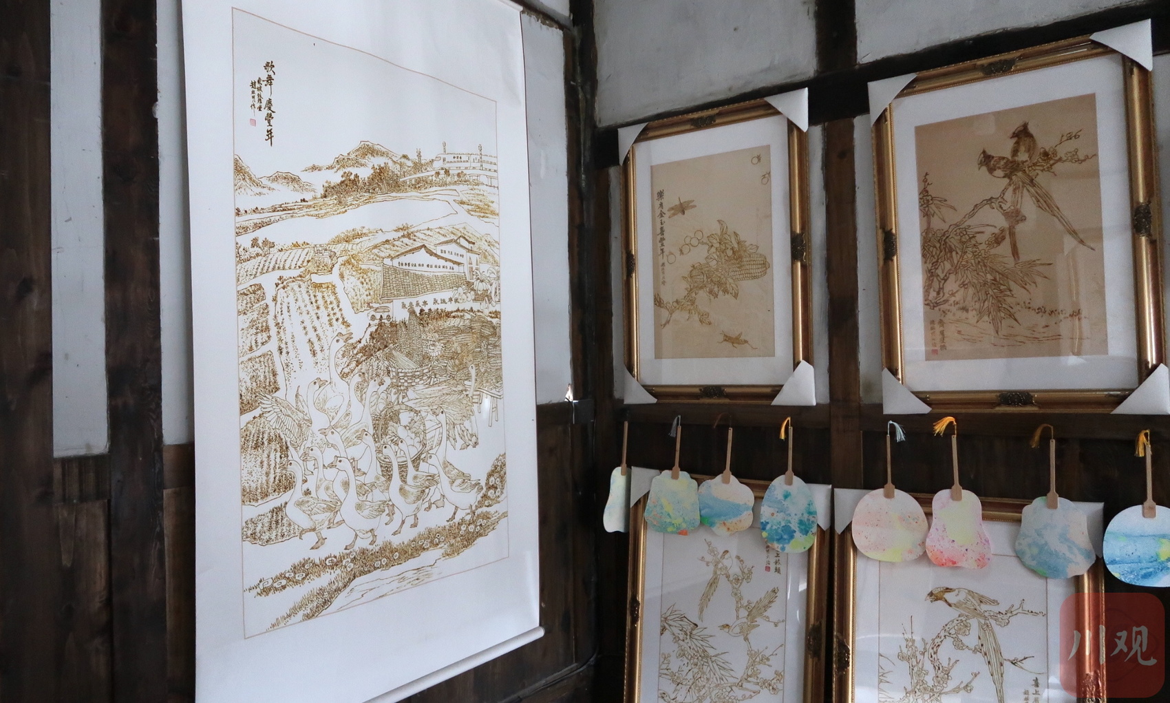 “这是我们自己的住宅,经修缮改建后打造成了一个传播非遗火绘的地方。”在旧时的“状元屋”,记者看见了由眉山市非物质文化遗产火绘艺术代表性传承人赵启明打造的“致雅堂”。