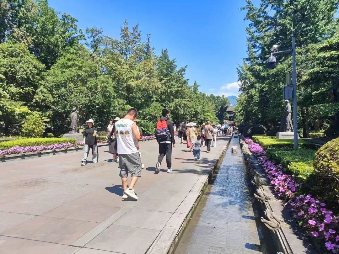 夏日的都江堰景区,繁茂绿树与古典建筑相映成趣,静谧湖景与精致石桥相得益彰,让人赏心悦目,心旷神怡。景区内一位讲解员表示,暑假来临,明显感到学生游客比平时多了不少,很多年轻人对中国传统文化非常感兴趣,“他们提的许多问题也显示出深厚的历史功底,一些观点非常新颖,对我们而言,更需要提升自己的业务能力。”