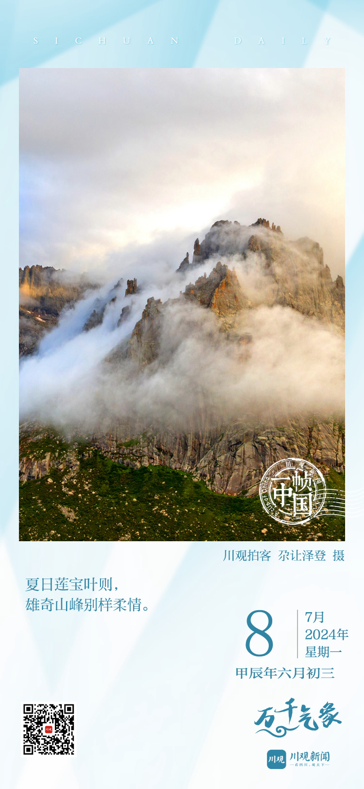 今天的《一帧中国》,川观新闻带您来到莲宝叶则景区,欣赏奇峰异石、冰川遗迹、雪山湖泊融于一体的雄奇美景。