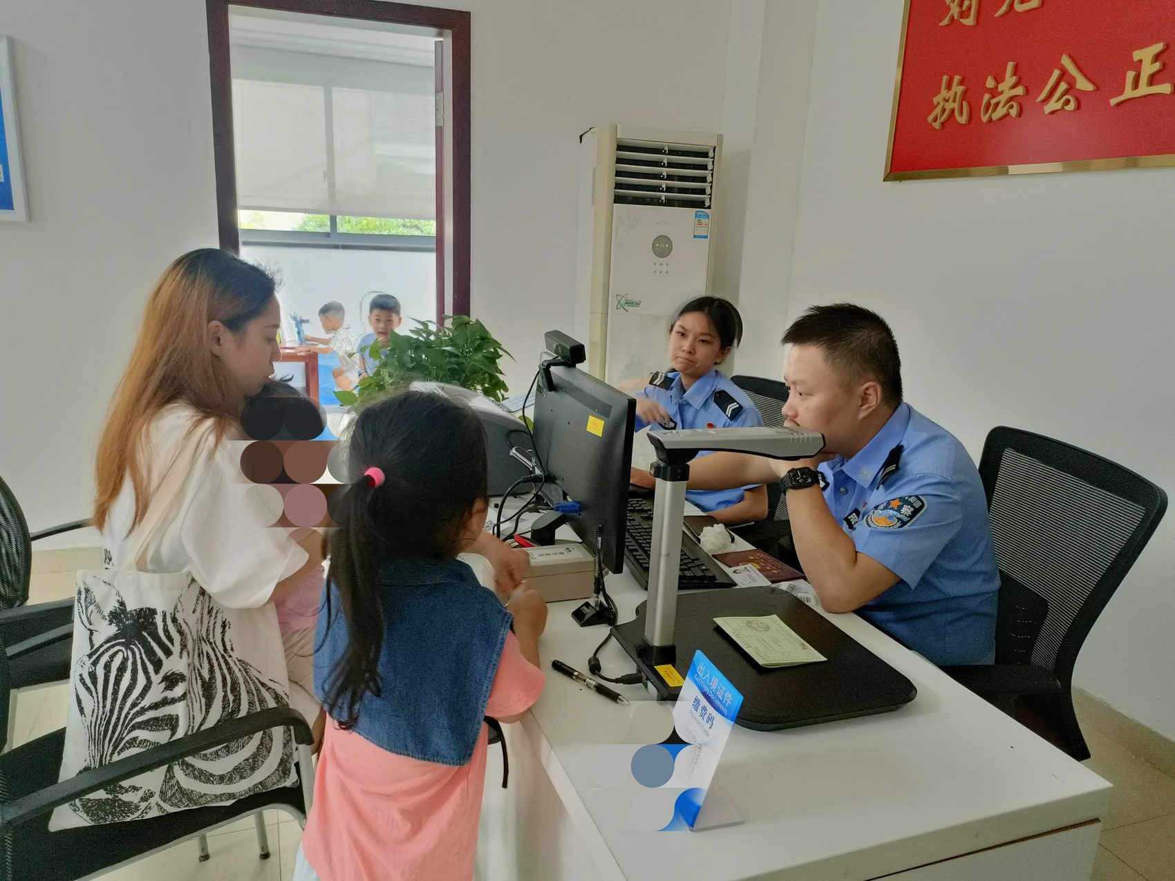 正在办理证件的家长和小朋友