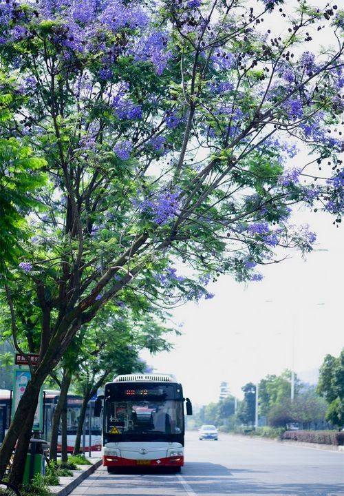 在晋阳有一条街,众多市民都会在花季时到此拍照打卡。这里,蓝天白云与紫蓝色的花树相映成趣,不时飘落蓝色花雨,诗情画意,浪漫至极!584株蓝花楹一字排开绽放在武晋路上,一簇簇蓝花楹一跃成为“万人迷”,1700米的蓝花大道惊艳到无数市民。大家在花下嬉戏、游玩、拍照,社区以“花楹晋吉”为主题开展活动,以花助力,带动区域经济发展,改善辖区环境。