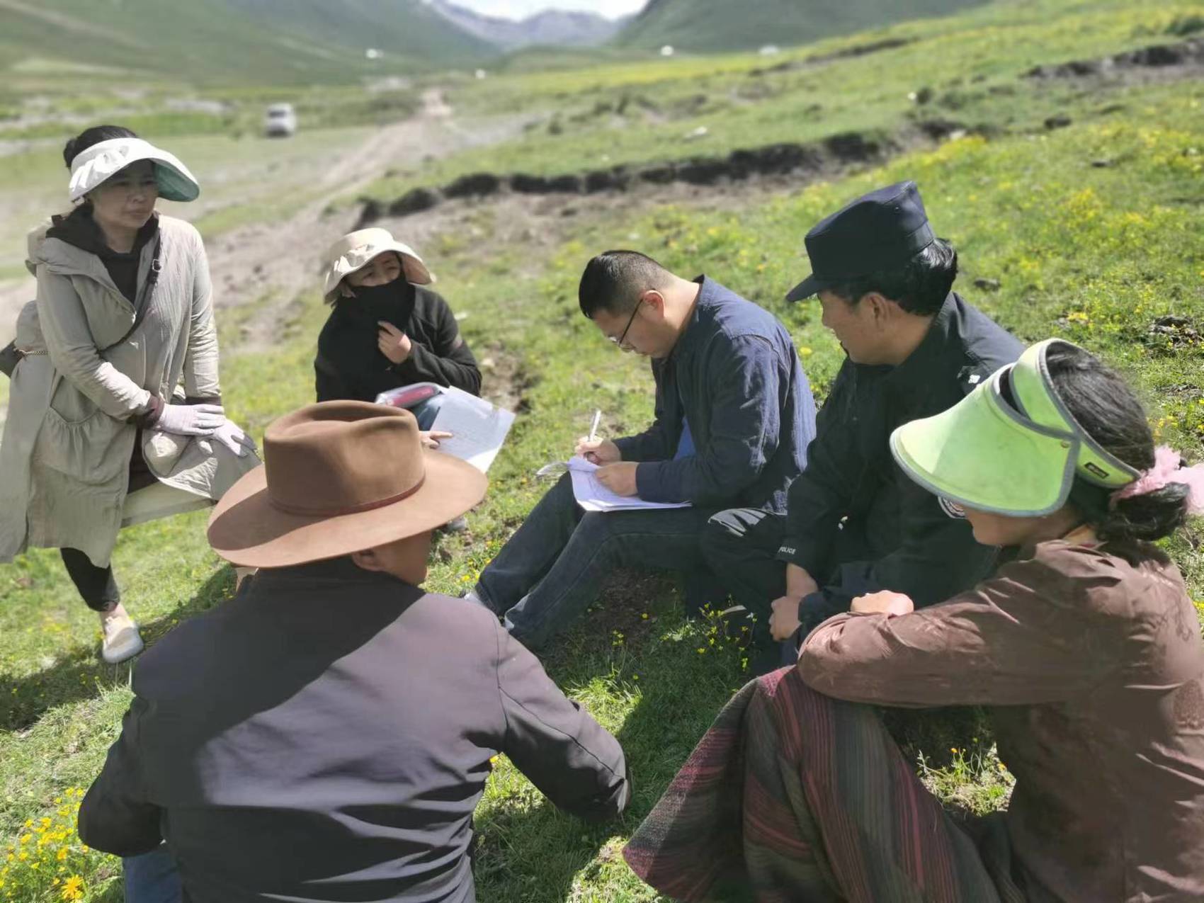 坚守高原17年,张瀚(中)经常背着氧气罐到海拔4000米以上的边远牧场、边远村寨开展工作。(受访者 供图)