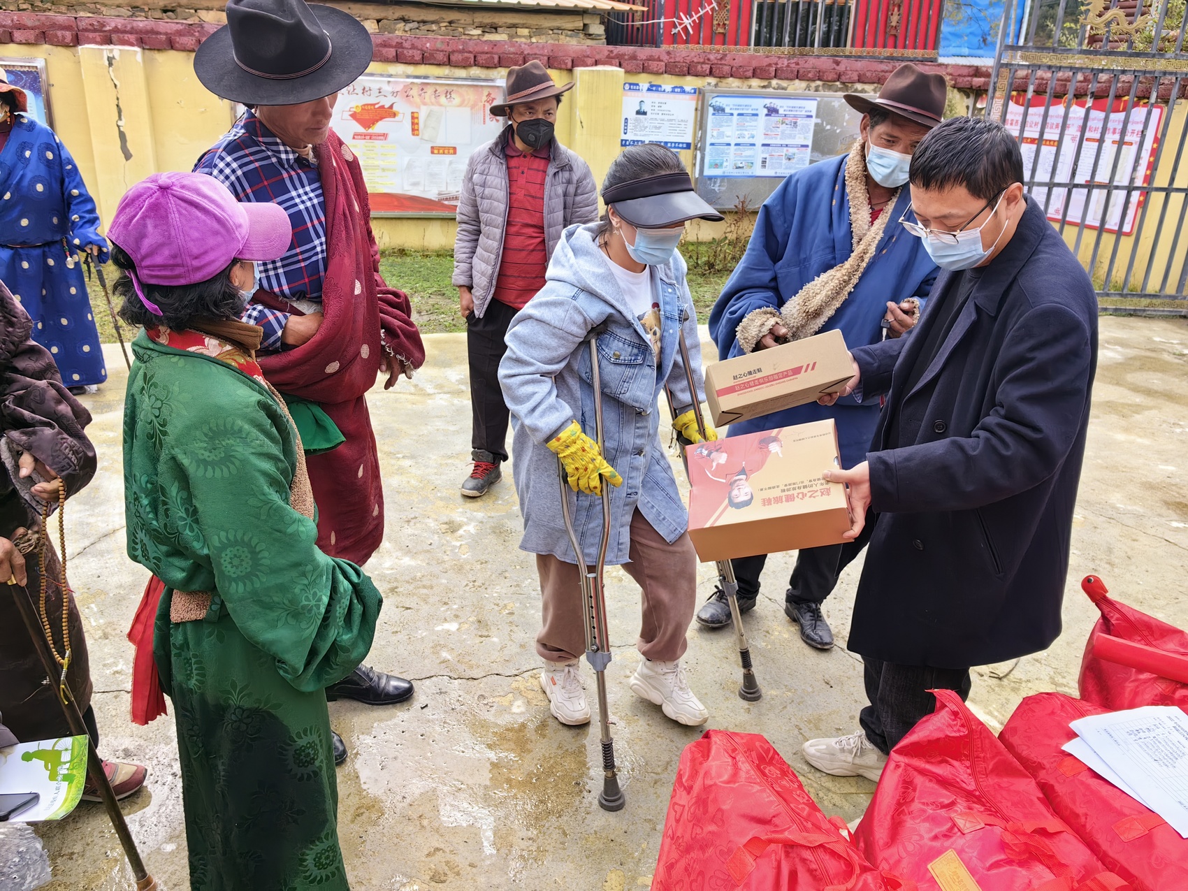 “我是共产党的干部,是来为你解决困难的”,每走进一个残疾家庭,张瀚(右一)都会亮出党员身份。(受访者 供图)