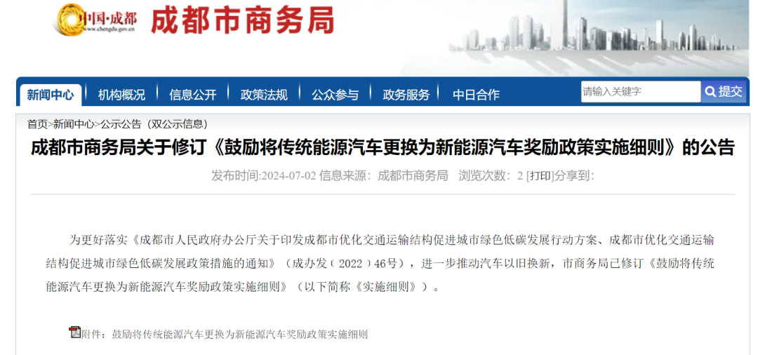 3.明确了政策执行周期的时间划分。(具体详见成都市商务局官网“通知公告”中《成都市商务局关于修订<鼓励将传统能源汽车更换为新能源汽车奖励政策实施细则>的公告》)