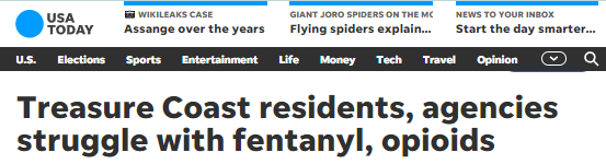 《今日美国报》近日的一篇报道以佛罗里达州圣露西港为例,芬太尼近年来与该地区至少数百人的死亡有关。当地居民帕蒂·罗伯茨(Pattie Roberts)的儿子在2018年因过量服用掺有芬太尼的海洛因而死亡。那一年,覆盖马丁、圣露西港、印第安河和奥基乔比县的法医办公室报告称,在其检查的案例中有64人是因芬太尼死亡。