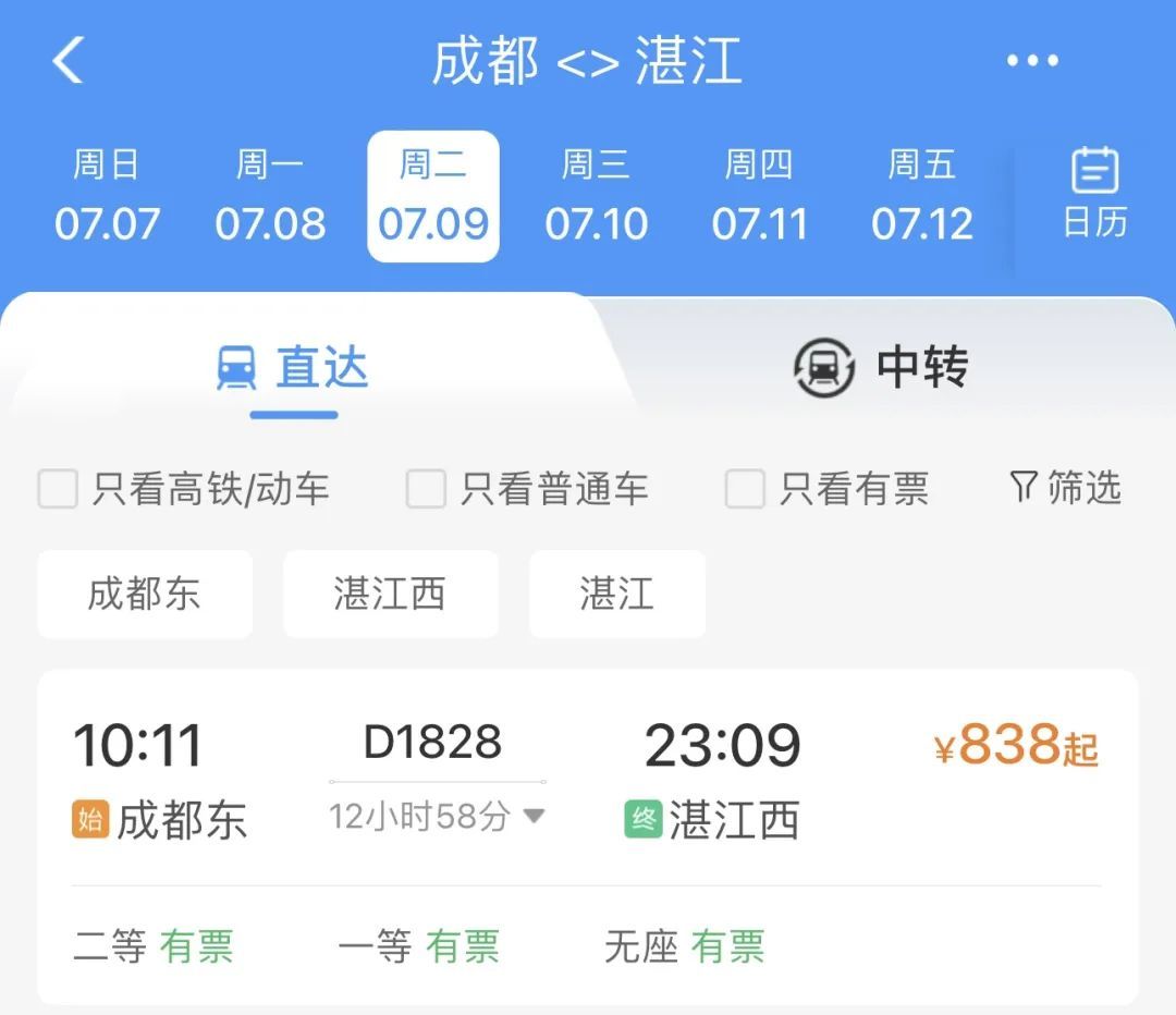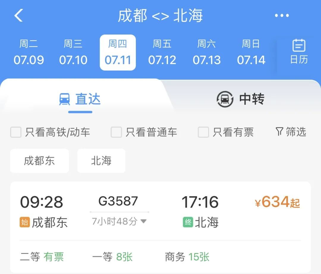 太好了!心心念念的成都出发直达动车终于回来了,北海、珠海、湛江、青岛、厦门都是能够看海的地方,夏季看海,吹风,玩水真的太爽了。收拾好背包,准备出发啦