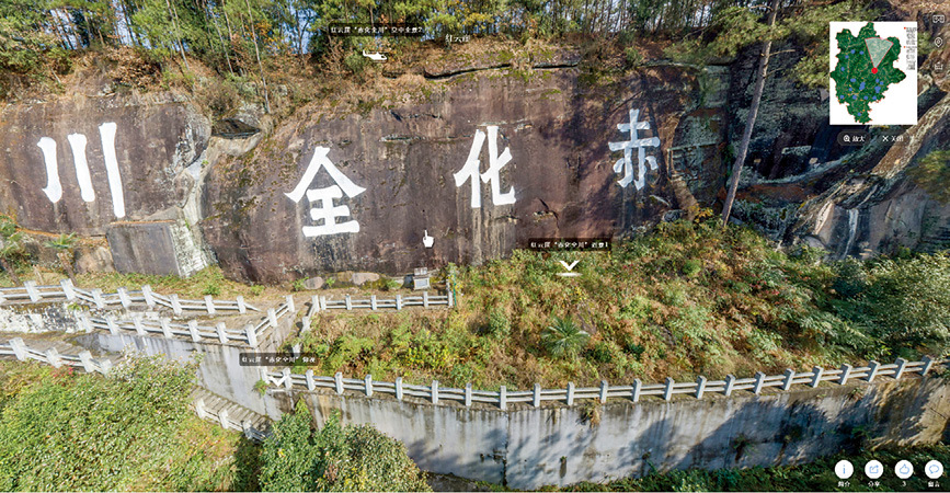 在通江红军石刻标语全景导览中,可灵活采用近景、全景、仰视等不同角度观看石刻。