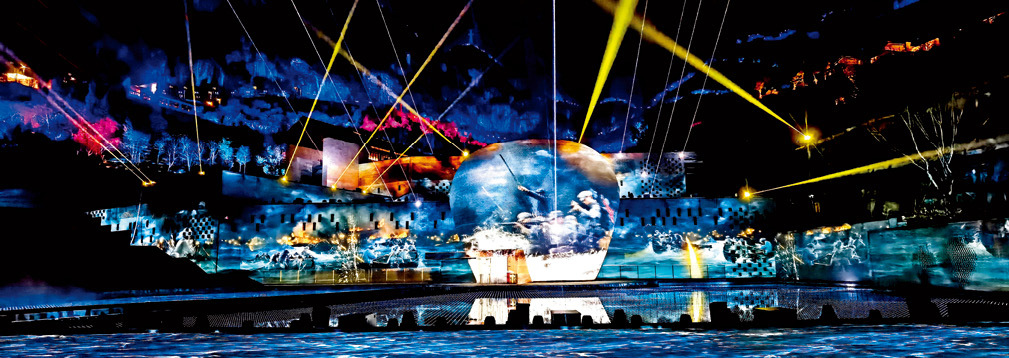 夜幕降临,华灯初上,泸州市古蔺县二郎镇赤水河岸人声鼎沸。一场以群山为背景,以郎酒庄园为舞台的大型光影艺术盛宴——“中国郎·山谷光影秀”的大幕徐徐拉开。