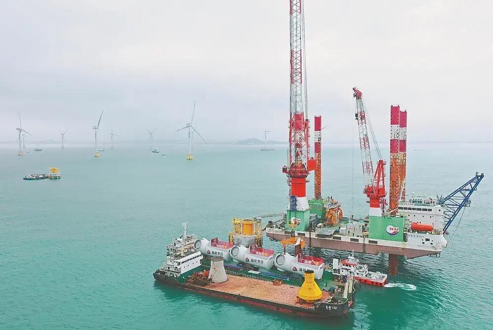 △ 福能集团曾是“一煤独大”的老国企,近年来积极转型,布局新能源、新材料、医疗健康等领域。图为福能集团三川海上风电项目。(资料图片)