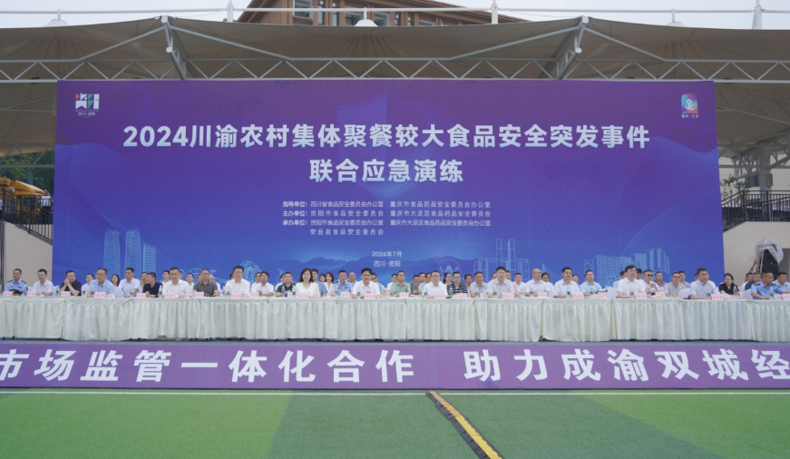 本次演练由四川省食品安全委员会办公室、重庆市食品药品安全委员会办公室指导,资阳市食品安全委员会、重庆市大足区食品药品安全委员会主办,资阳市食品安全委员会办公室、重庆市大足区食品药品安全委员会办公室、安岳县食品安全委员会承办。