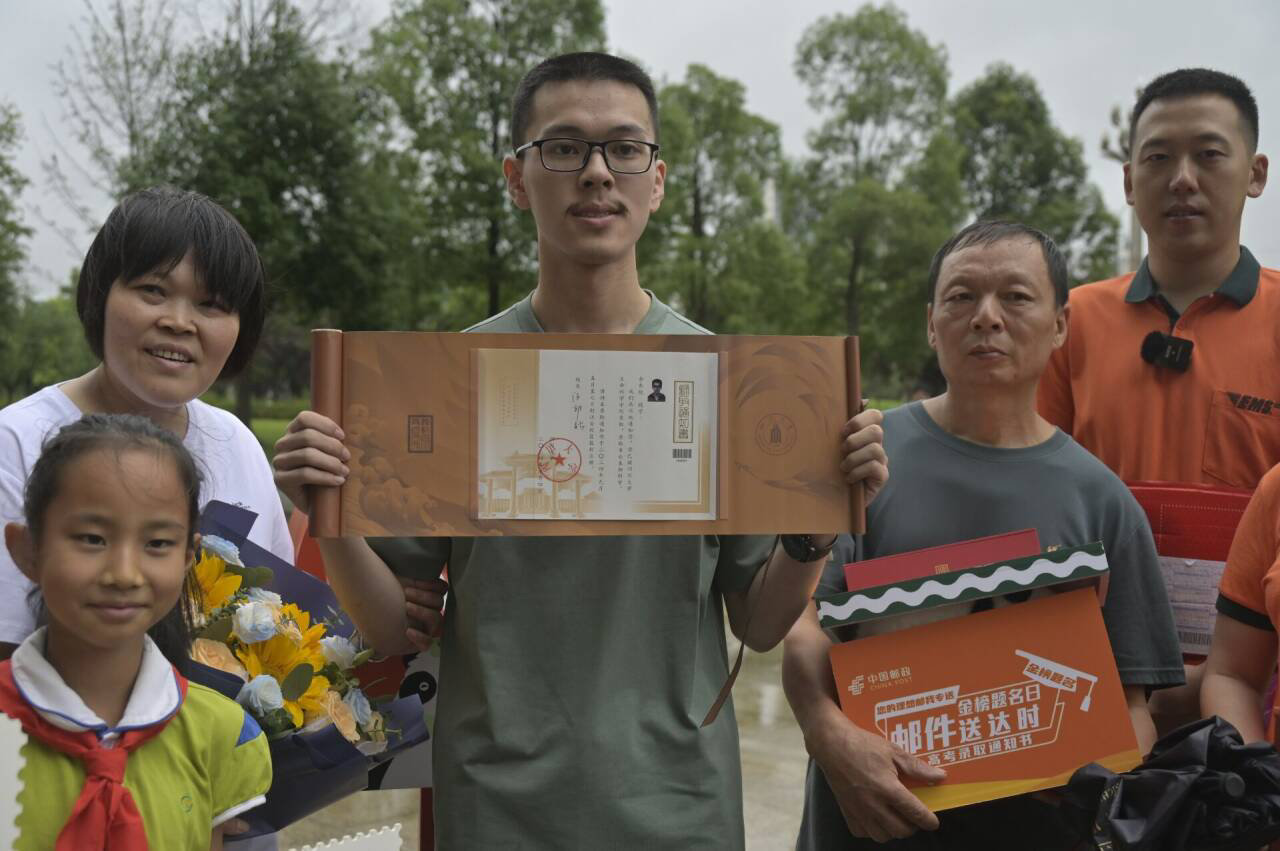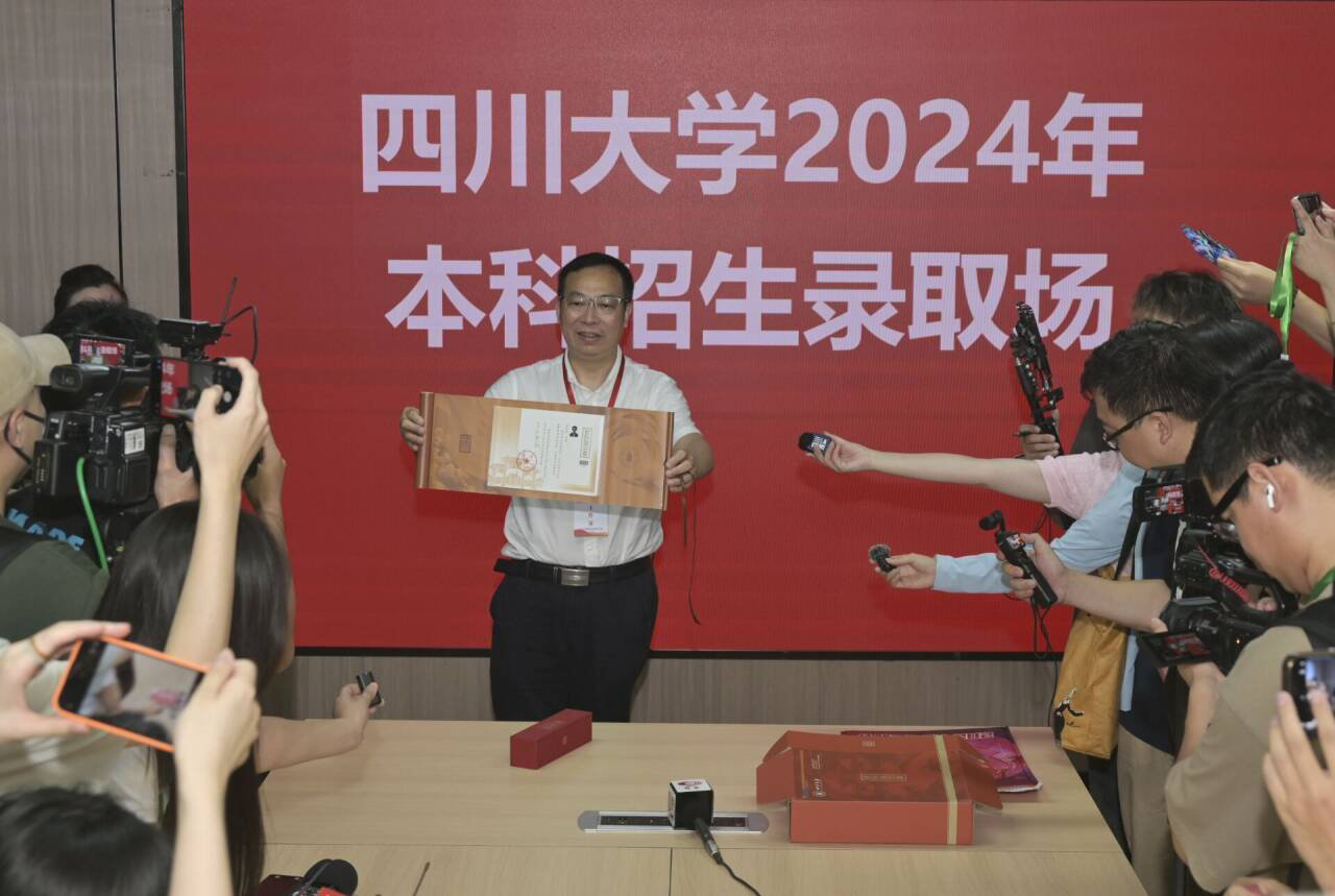 “同学,这是你的录取通知书,请签收!”7月8日上午,一份由四川大学校长汪劲松亲笔签发的录取通知书从四川大学2024年本科招生录取场发出,经由中国邮政全程护送,安全到达考生余东锐手中。