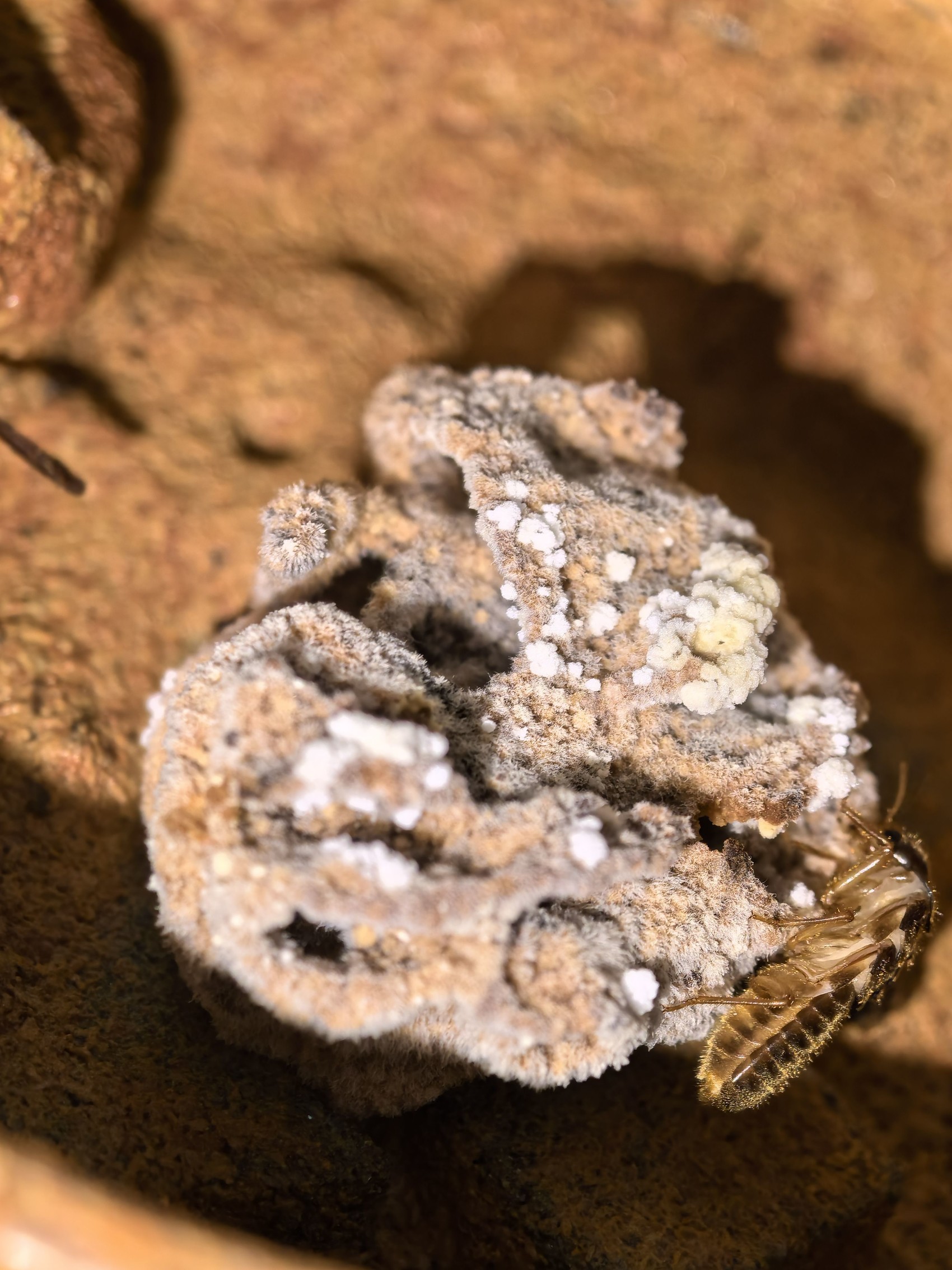以食用菌相关昆虫及菌虫互作机制为研究方向的团队专家杨学圳介绍,团队从2014年初开始进行鸡枞菌人工栽培驯化的研究工作。从鸡枞菌的菌丝分离培养开始,到饲养培菌白蚁,用通俗语言来说,这10年来,专家团队在尽可能“仿生”模拟鸡枞菌生长的环境。