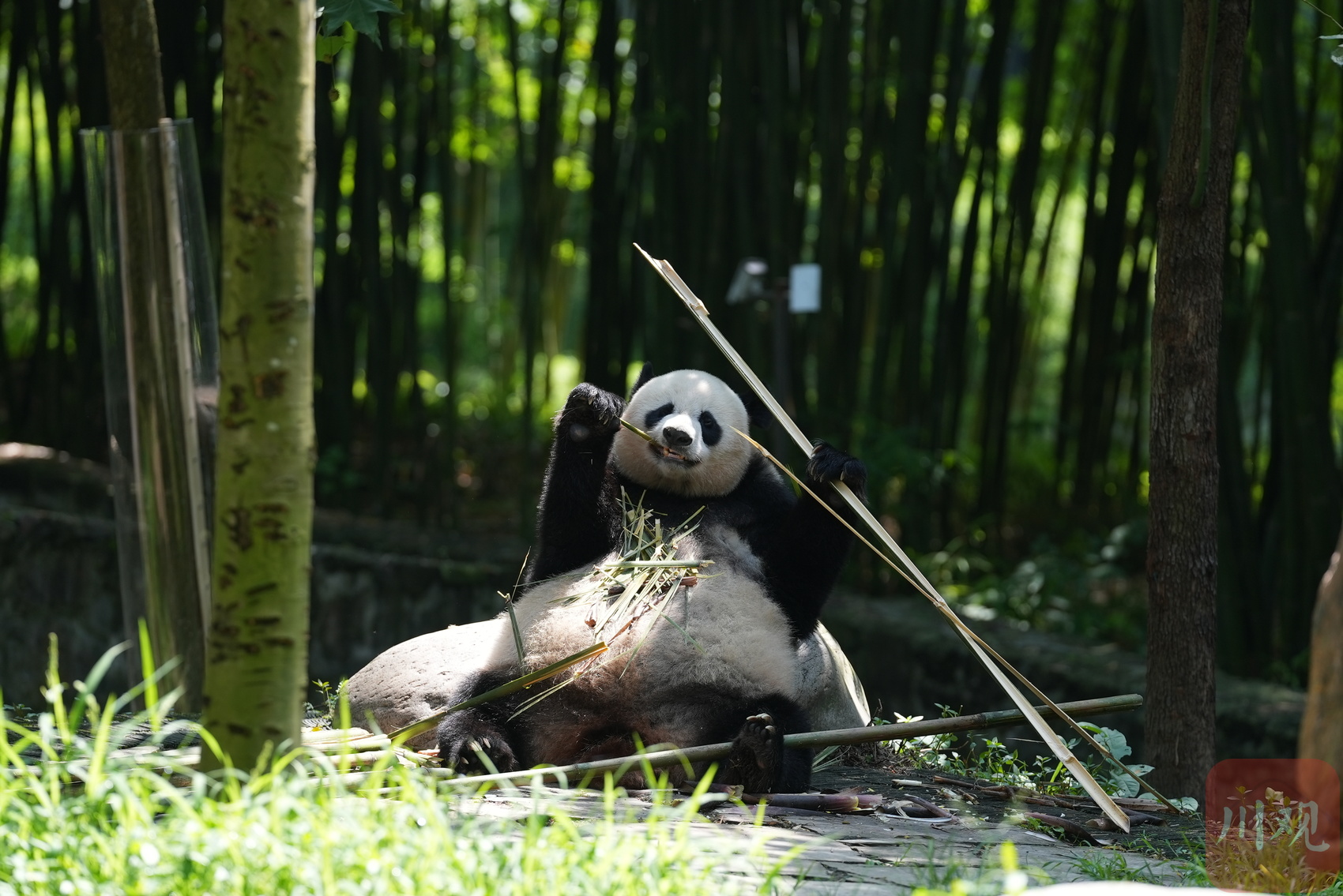 津津有味地啃着竹子,不时发出咂巴咂巴,竹林间斑驳地阳光洒在大熊猫身上。7月5日至6日,中国大熊猫保护研究中心举行大熊猫爱心人士见面会活动。在中国大熊猫保护研究中心都江堰基地康养区、卧龙神树坪基地、成都大熊猫繁育研究基地,参与活动的大熊猫爱心人士们见到了期待已久的大熊猫“添添”、“美香”、“福宝”等等,尽管大熊猫各不相同,但它们在“上班时间”可是一直有在“努力营业”,专心致志的干饭萌态令人流连忘返。