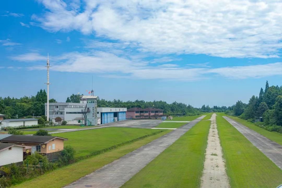 “这里有800×30米草地跑道1条,建有综合办公楼、标准化机库、空中交通管制塔台、游客中心、科普生活区,还有模拟飞行室和航空发展历史科普馆。”四川安飞通用航空青城山机场(简称“青城山机场”)管理中心主任田翔介绍,该机场占地面积约350余亩,巍峨壮美的青城山就横亘在不远处,连绵的山势,远远看上去果然就像一座城。