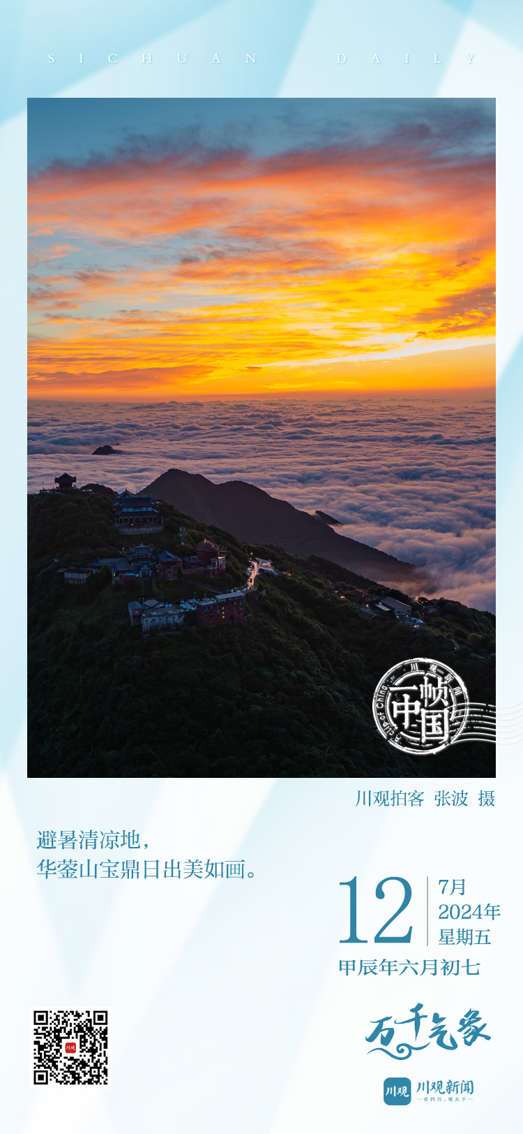 今天的《一帧中国》,川观新闻带您来到广安市华蓥山,欣赏宝鼎日出时刻,朝霞云海盛景。