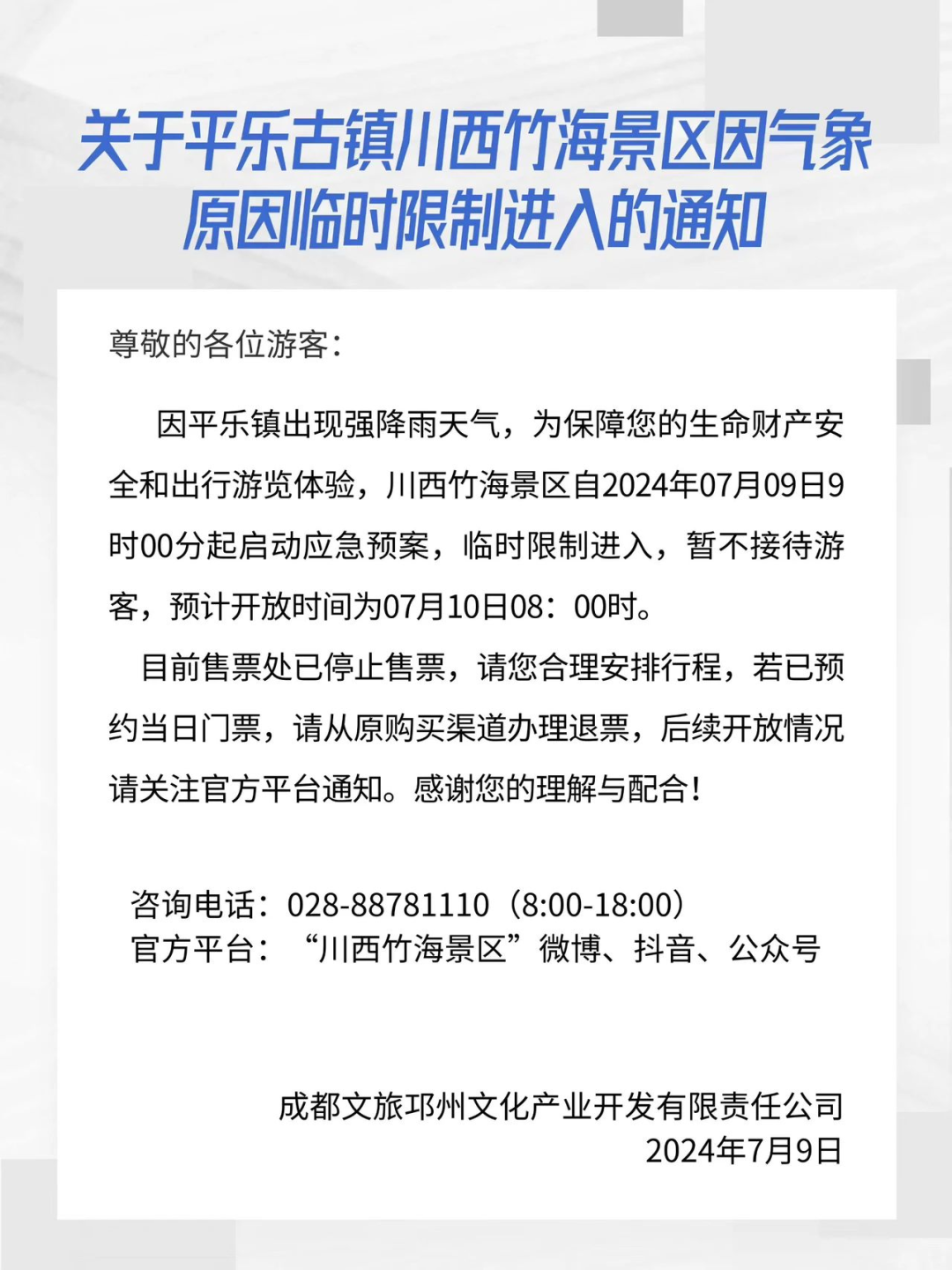 成都多个景区发布紧急通知