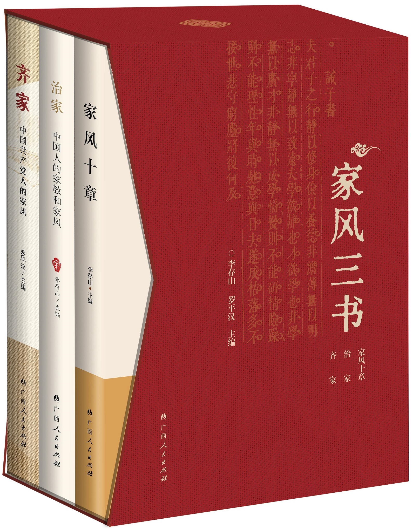 《家风三书》是《家风十章》《治家——中国人的家教和家风》《齐家——中国共产党人的家风》3部书的套装版。套书着眼于家风,落脚于现代家庭建设,充分挖掘丰富的家风资源,展现从古到今中国人的优良家训、家教和家风故事,是一套面向大众、具有启发性和亲和力的家风通俗读物。