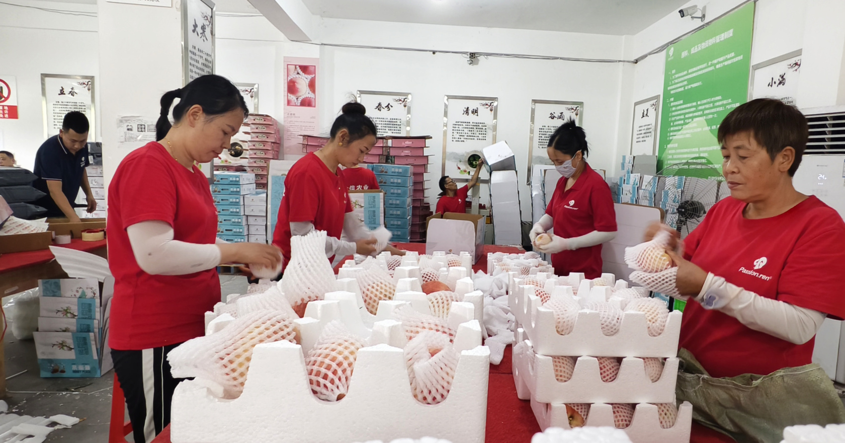 龙泉驿区长松水蜜桃专业生产合作社的分拣包装点。