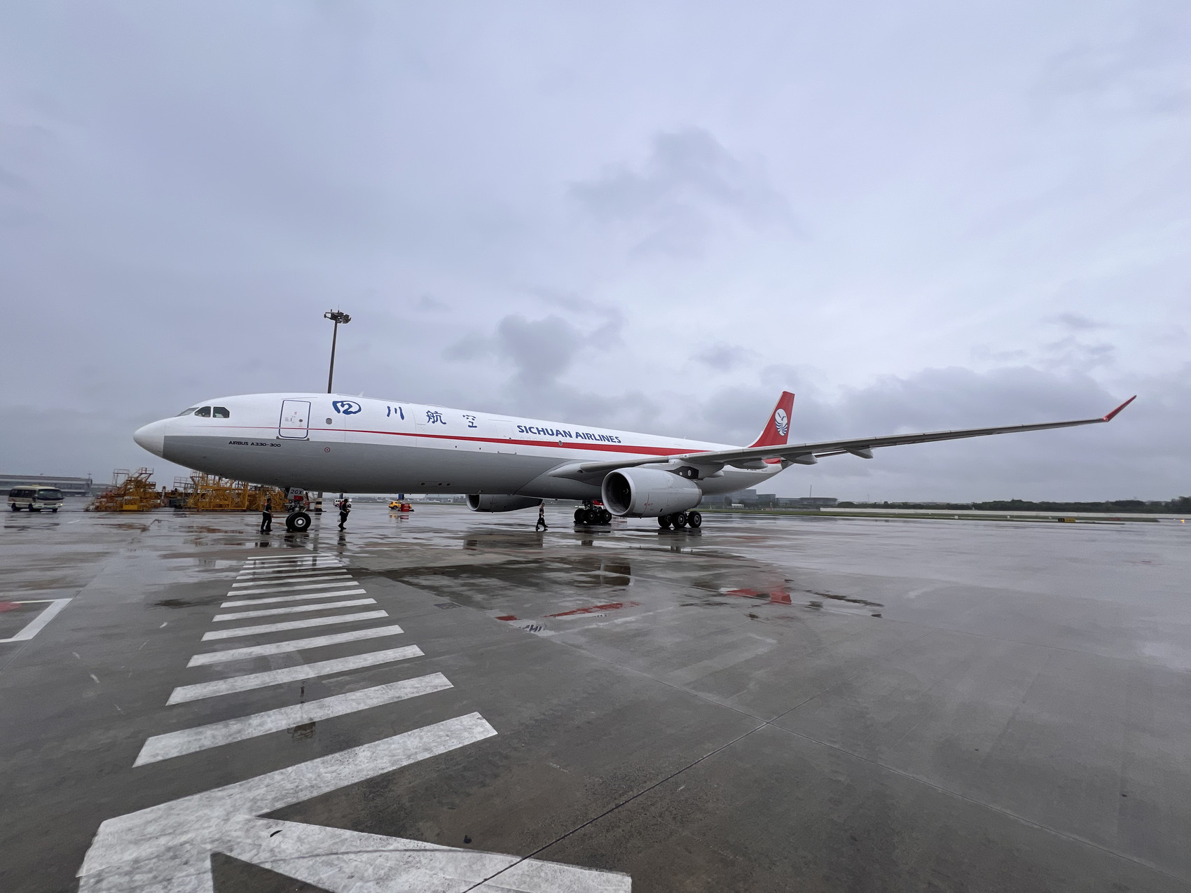 客运方面,川航依托“双流快、天府转”战略培育天府中转特色品牌,至2023年在天府机场投放运力达到55架,其中宽体机驻场14架。今年夏航季,川航运营的国际及地区航线数量达到35条,通航航点31个,形成以成都为核心,全面辐射欧洲、北美洲、大洋洲、东南亚、东北亚的国际中转网络布局。目前,川航在天府机场的中转份额已经达到32%,排在天府机场各航司首位,而国际中转占比达到了90%。