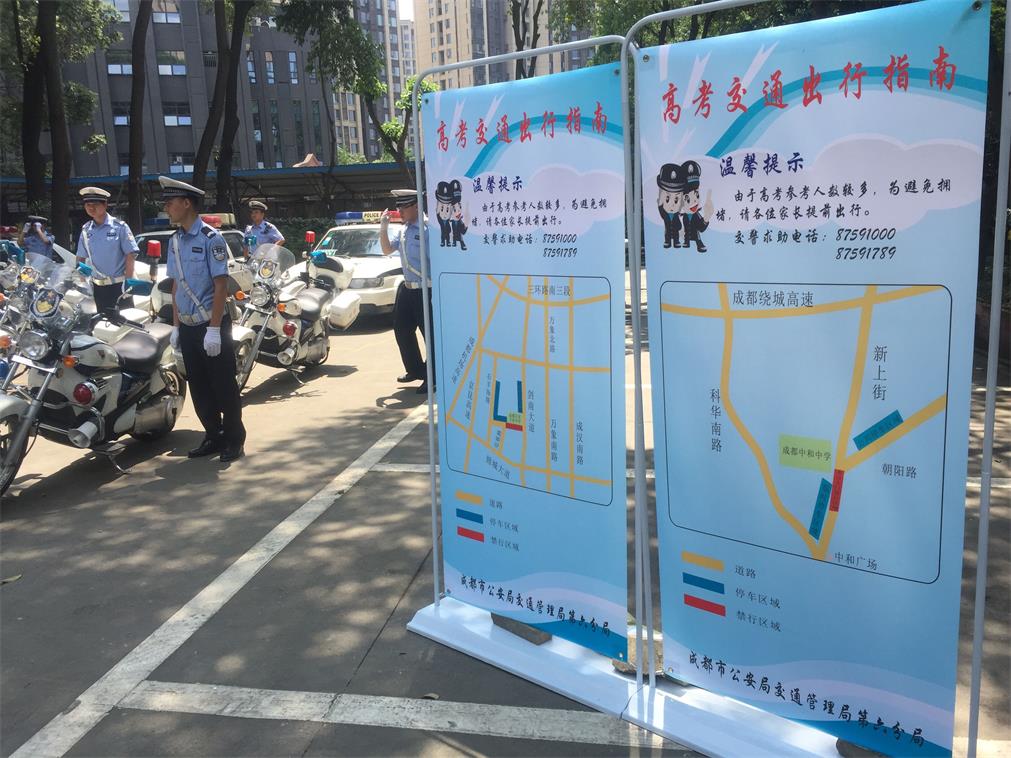 在高考期间,为了保证考场周边道路通畅,确保考生能及时抵达考场,成都各高考考点都将实施临时交通管制,并为家长提供临时机动车和非机动车停车点。成都交警提醒,与高考无关的车辆请尽量不要前往考点周边路段,以免造成拥堵。