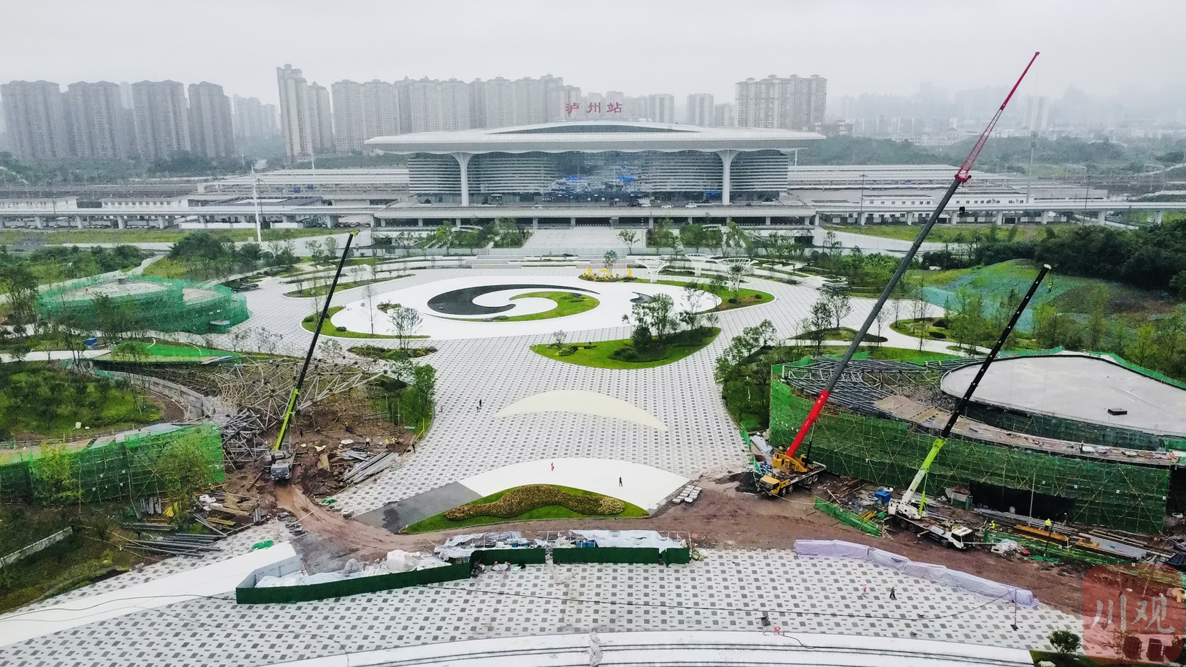 目前,泸州龙马潭区九狮路及高铁站前广场项目已基本完成1至4号楼主体工程及装饰装修工程,5号楼工程量已完成85%。另外海绵城市建设内容及乔木、灌木、地被的栽植,退台栈桥、水幕桥的建设内容以及龙泉湖及舞台的建设内容已完成。“预计项目将于国庆节前完成并投入使用,到时候旅客一出高铁站‘干杯’景观便映入眼帘,可以感受到泸州酒文化的氛围。”王华说道。