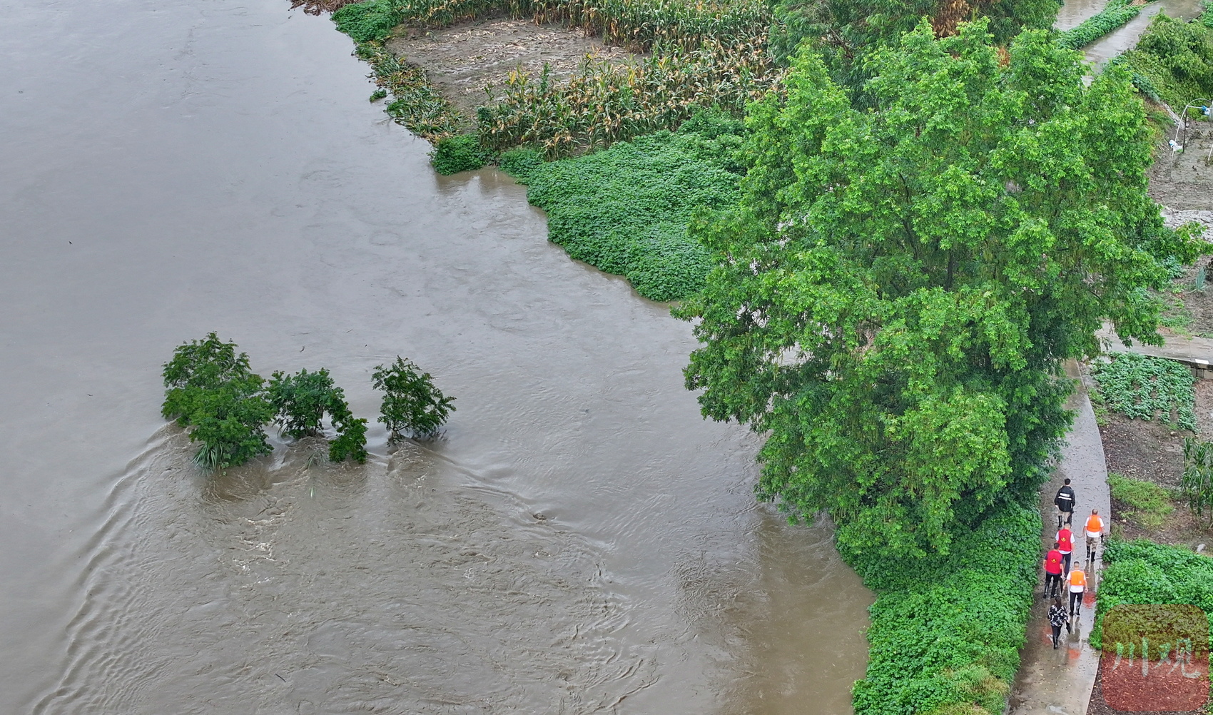 双流区永安镇防汛队员在锦江河附近巡逻。