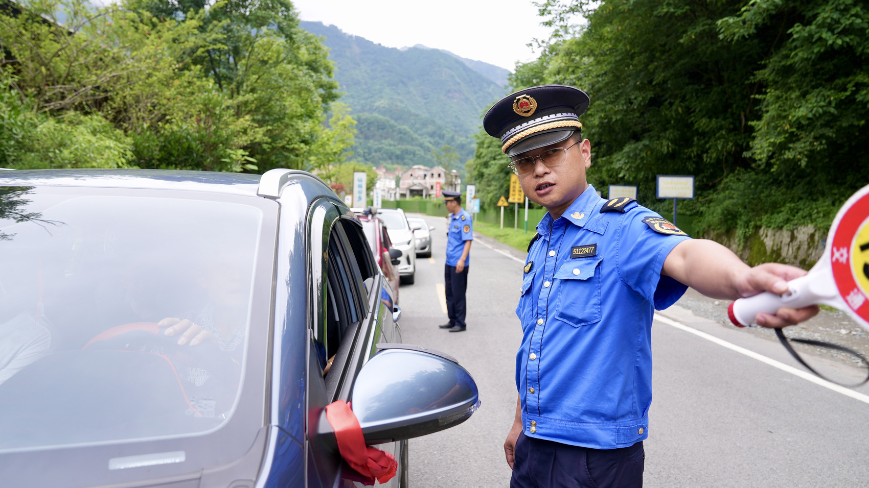 10日15时30分,川观新闻记者来到银白路白水河大桥桥头处,龙门山镇防汛减灾劝返点工作人员牟杨依次拦住上山汽车。“因为地质灾害三级预警,目前限制游客上山,为确保您的安全,请您返回。”牟杨对途经车辆逐一盘问后,对外来游客进行劝返。