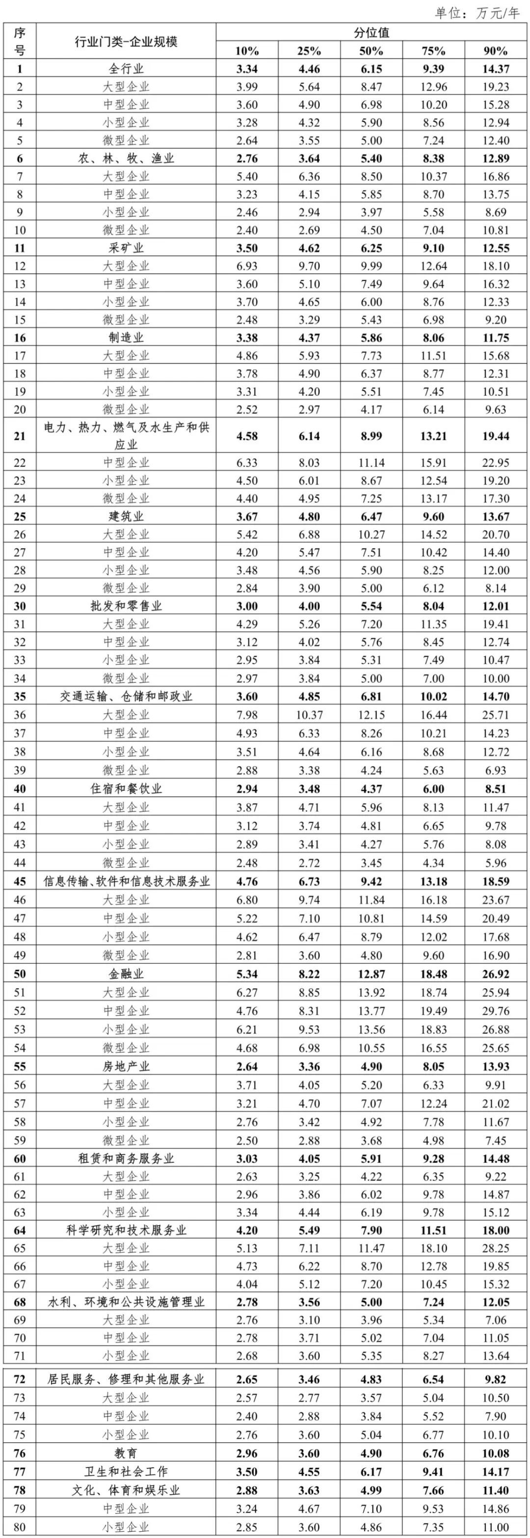 分行业门类不同企业规模的企业从业人员工资价位