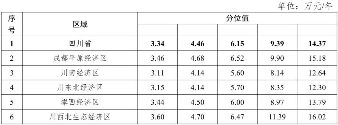 从整体工资报酬来看,成都平原经济区整体工资价位分位值中位数为全省最高,川西北生态经济区其次。四川省整体工资价位中位数为6.15万元/年。