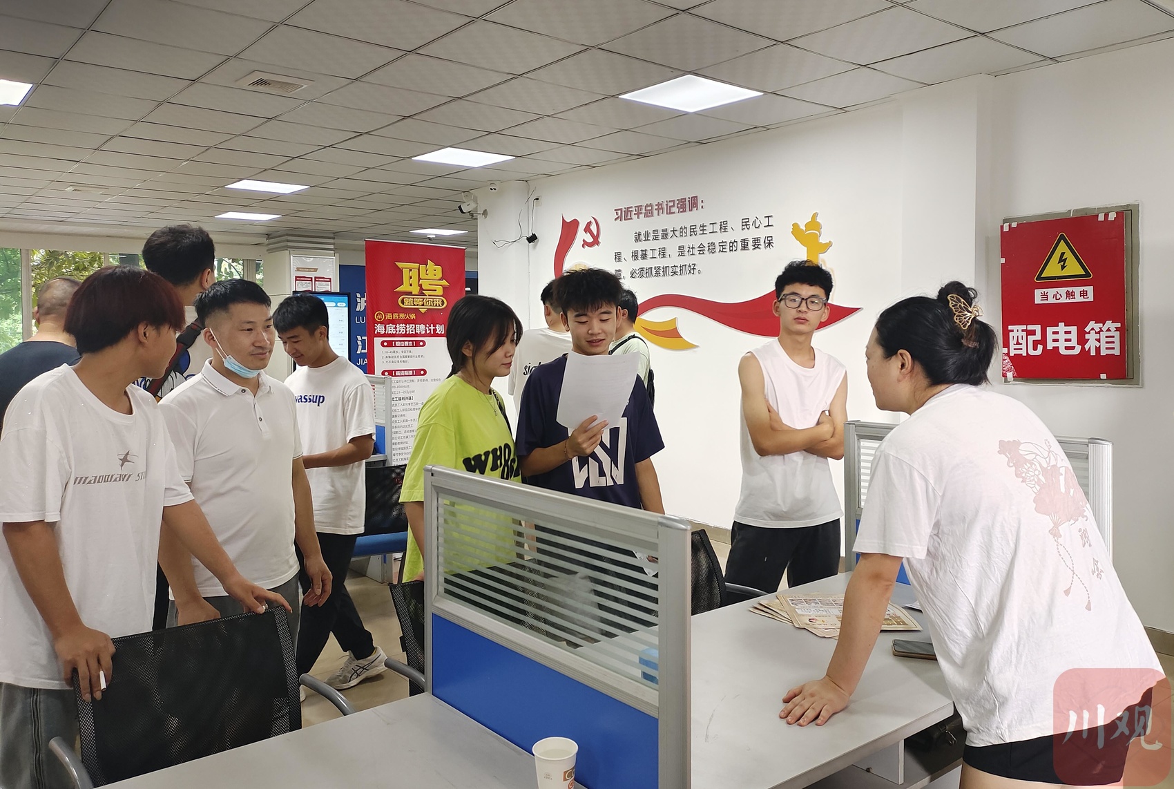 日前,在泸州市江阳区太平街88号的零工市场内工作人员王新月忙碌的迎接着来前来找工作的应聘人员和招聘企业。