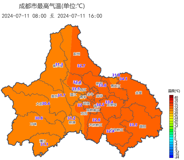 全市最高气温为34.2℃