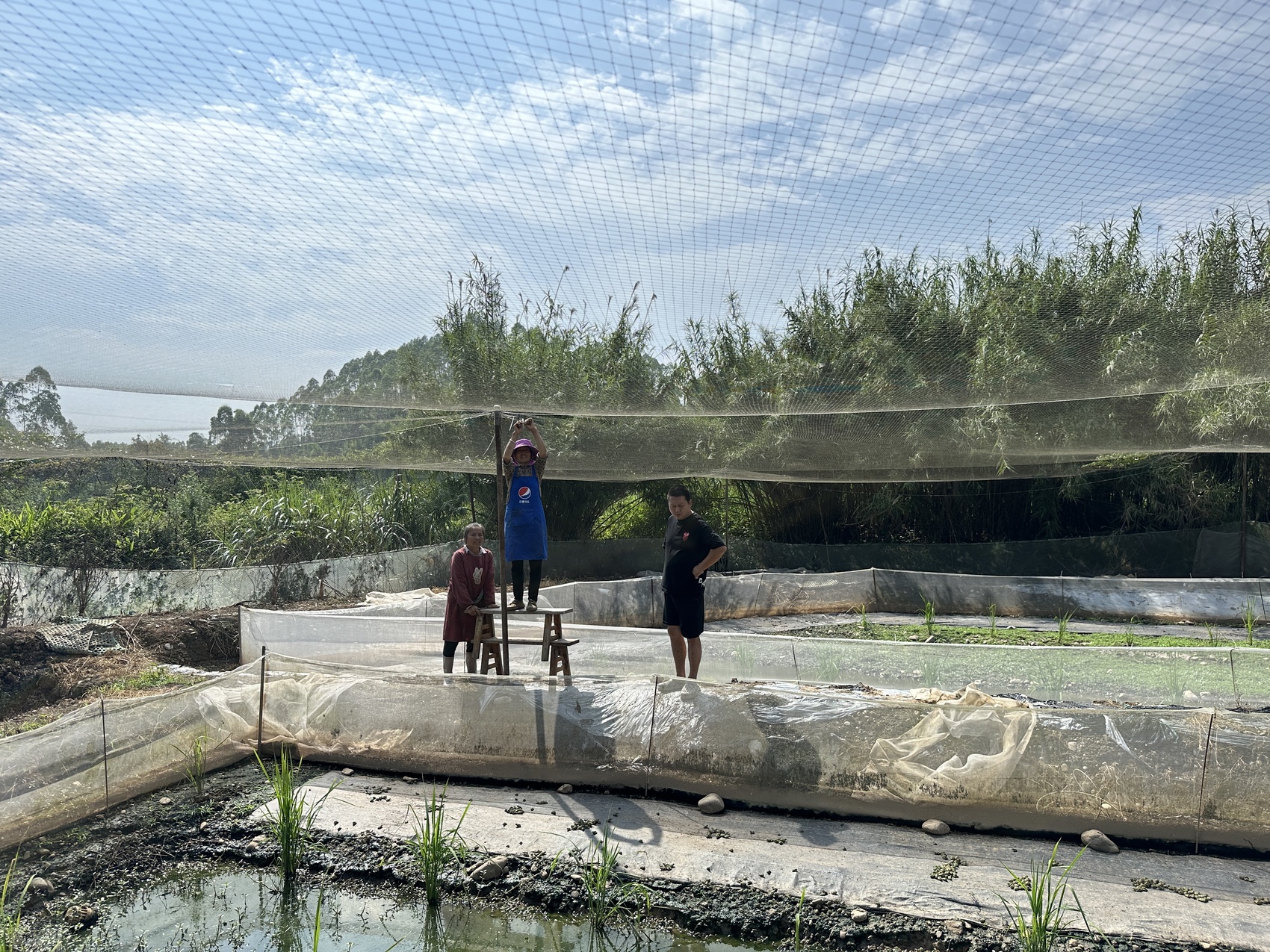 正在蛙田里忙活的小伙名叫周斌,今年38岁的他在全福村养蛙已经有八年时间了,八年里他熟练掌握了黑斑蛙的各种养殖技术,无论是孵化还是育苗、驯养,他都不在话下,任何病害和水质、环境的变化,都难逃他的“火眼金睛”。