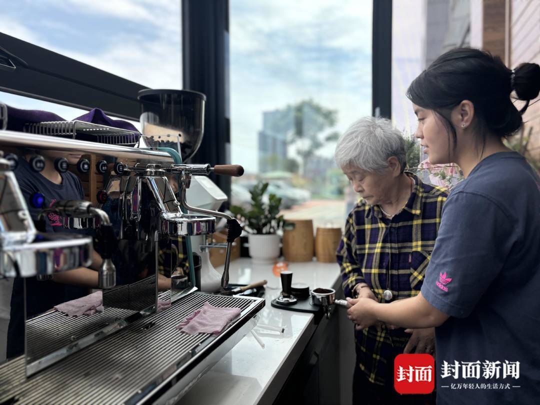 △奶奶们走进了咖啡操作间,学习做咖啡