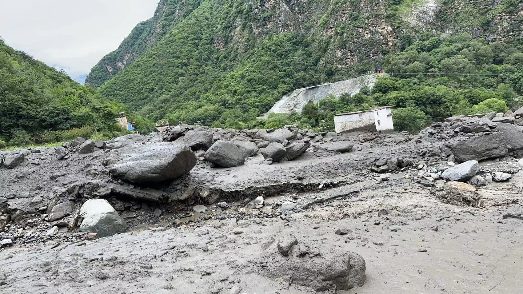 泥石流造成G248(丹巴县至八美镇)道路被冲毁1000余米,道路中断暂无法通行,截至发稿时道路还在抢通中。