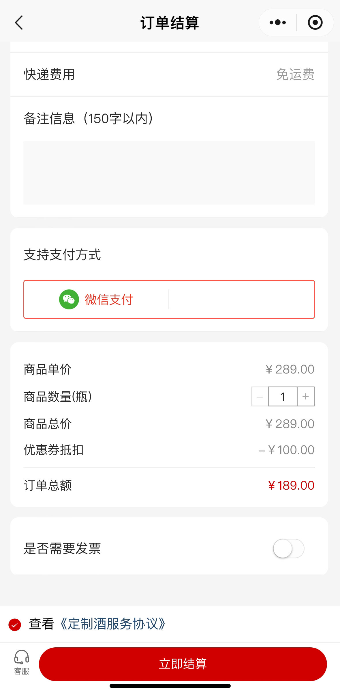 定制数量没有限定,1瓶也能定制,填上地址后就可直接在线上下单。如选择平台现有设计和包装,操作简单便捷,但如果想要更个性化和复杂设计的定制产品,则需要和客服进一步沟通。
