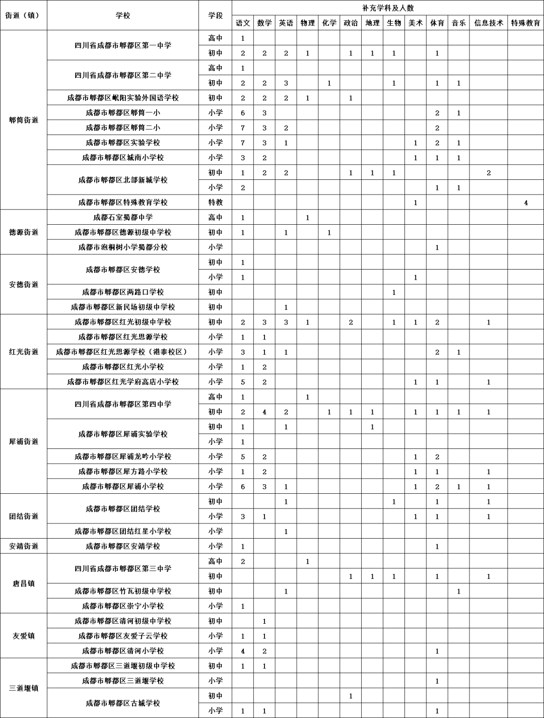 郫都区教育局下属37所学校,拟面向社会公开招聘编外教师244人。