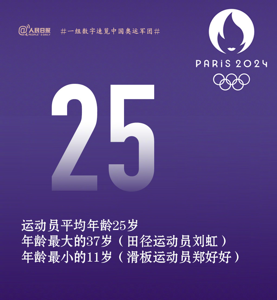 ⑤25:代表团运动员平均年龄25岁,年龄最大的37岁,年龄最小的11岁