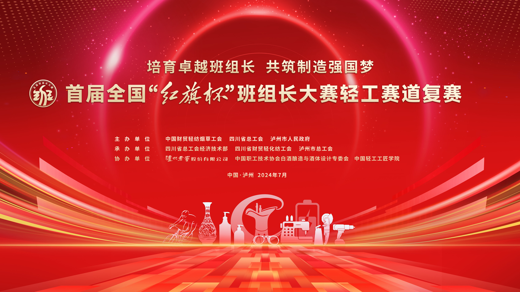 本次复赛由中国财贸轻纺烟草工会、四川省总工会、泸州市人民政府主办,四川省总工会经济技术部、四川省财贸轻化纺工会、泸州市总工会承办,泸州老窖股份有限公司、中国职工技术协会白酒酿造与酒体设计专委会、中国轻工工匠学院协办。大赛以“培育卓越班组长,共筑制造强国梦”为主题,重点围绕“智改数转、降本增效、人机融合”,突出考察专业性、技能性水平,重点考察班组长通用管理知识和专业技术能力,为广大轻工行业班组长搭建深耕技术、历练本领、改革创新竞技擂台。