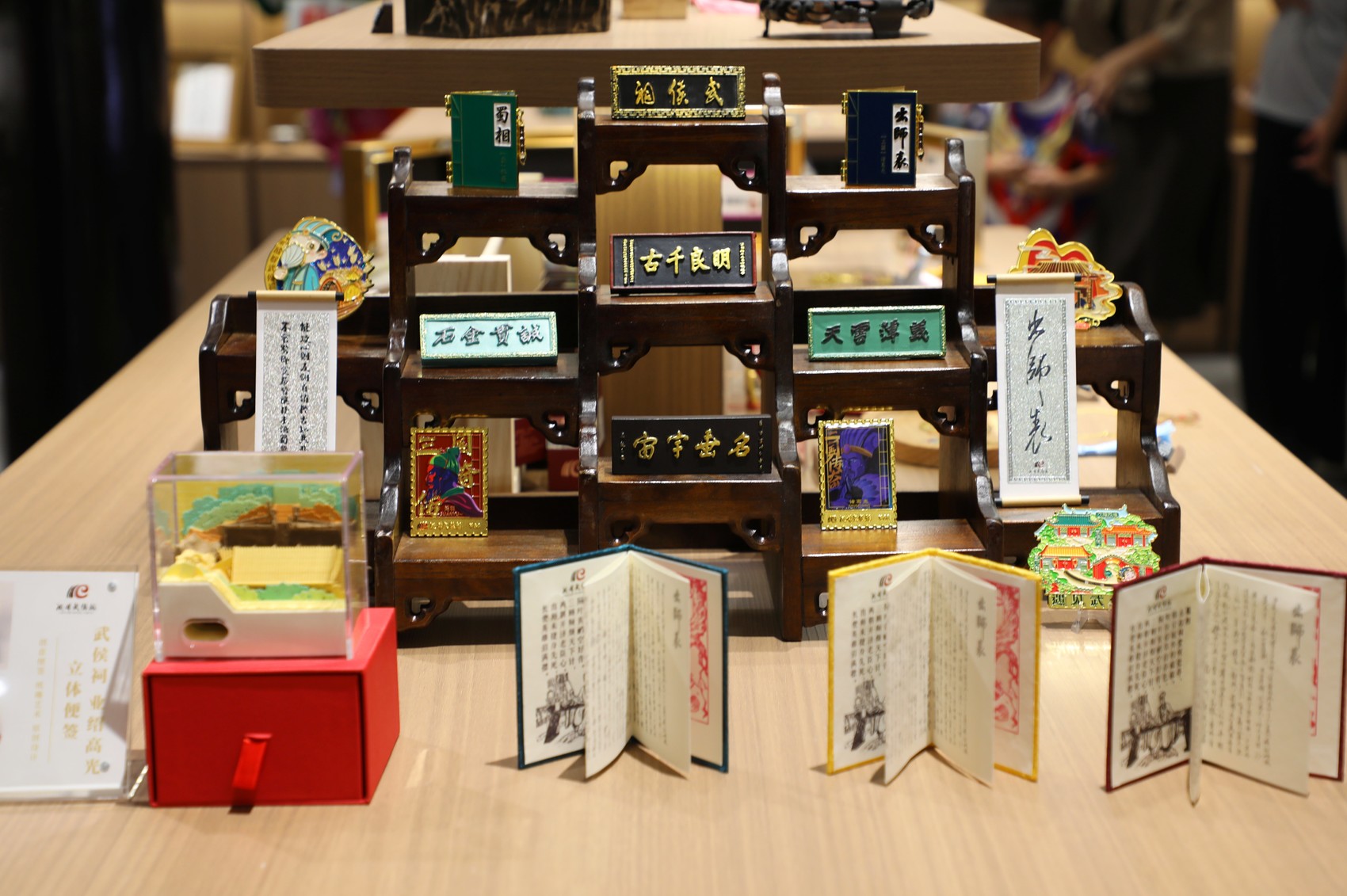 武侯祠立体便签、卷轴冰箱贴、羽扇纶巾杯……在武侯祠博物馆内的香叶轩,精美的三国文创纪念品吸引游客的目光。“关注度最高的一款是以青龙偃月刀为造型的布偶,是新出才两个月的‘顶流’产品,每天都有很多游客指名要,经常卖断货,正在加力补货。”现场工作人员介绍。