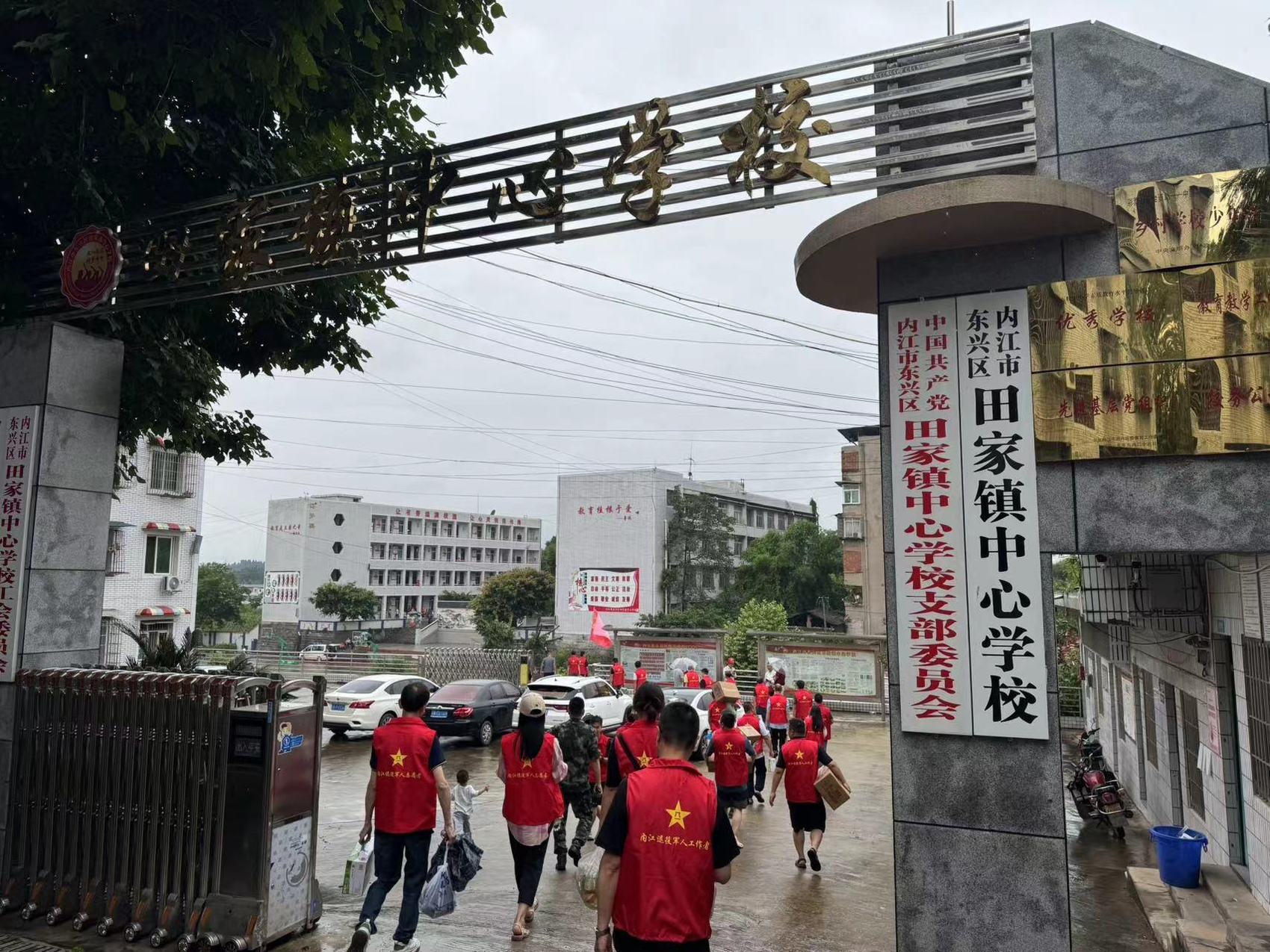 当天下午3点,记者在安置点现场看到,多名来自内江市退役军人事务局组织的志愿者正在加紧搬送物资。据内江市退役军人事务局局长易铭鑫介绍, 该局目前组织了三支队伍携带了食品饮用水等物资送往田家镇临时安置点。