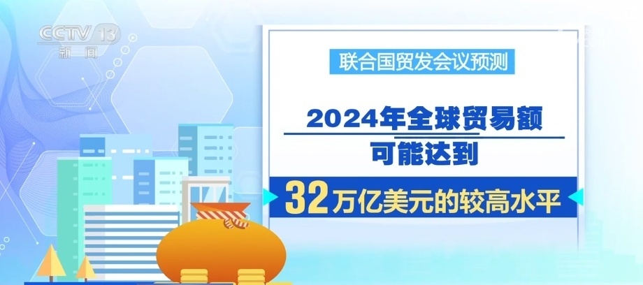 联合国贸发会议预测,2024年全球贸易额可能达到32万亿美元的较高水平;世界银行将2024年全球经济增长预期由之前的2.4%上调至2.6%。