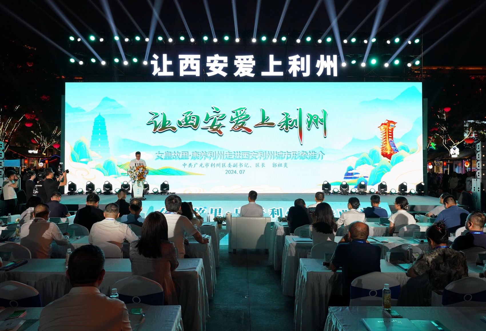 7月15日,“让西安爱上利州——女皇故里·康养利州走进西安”文化旅游暨经济合作专场推介会在西安市大唐不夜城地屏广场举行,吸引了众多西安市民和全国游客的目光。