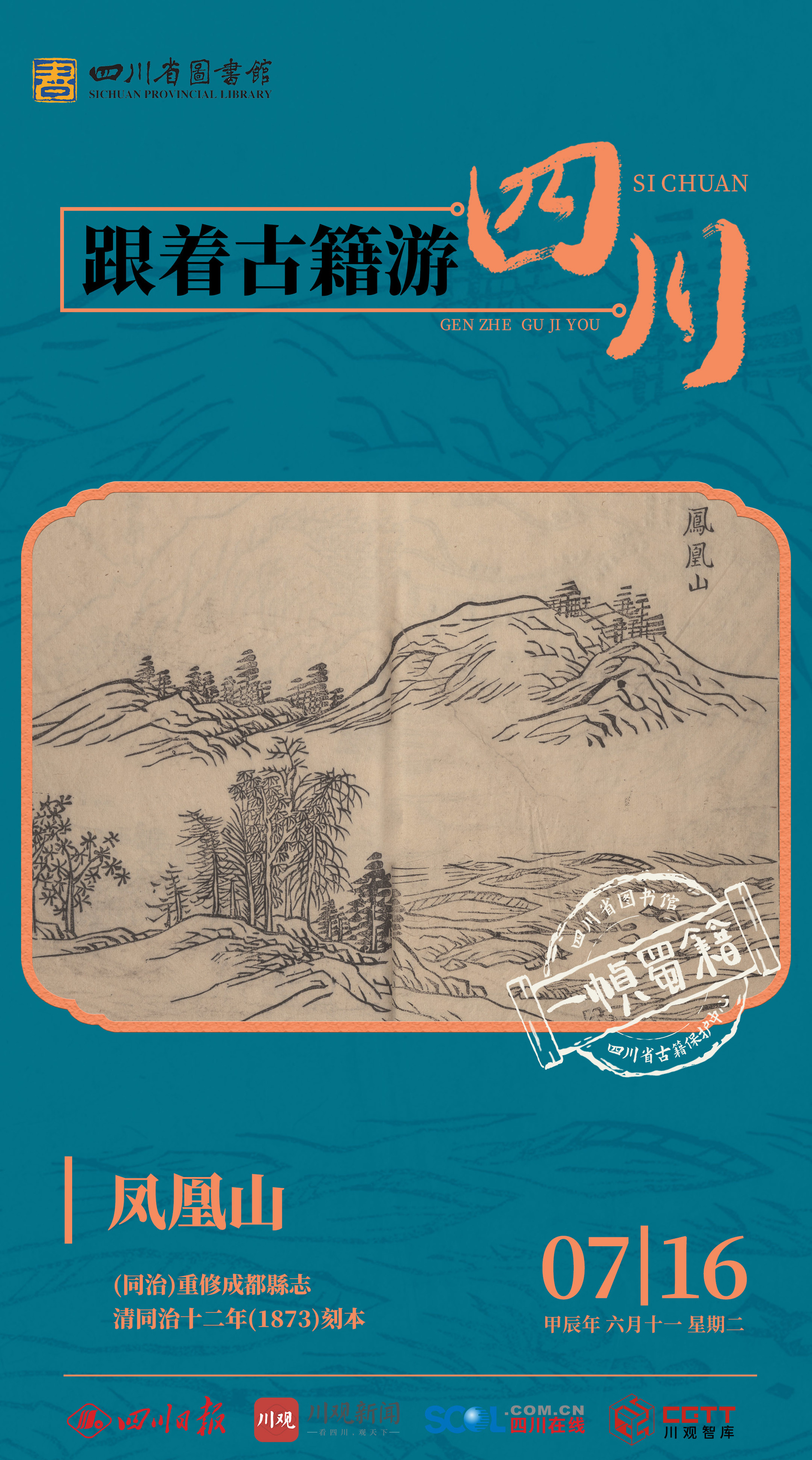 7月16日,跟着古籍游四川,今天打卡凤凰山。海报图所选版本为(同治)重修成都县志 清同治十二年(1873)刻本。
