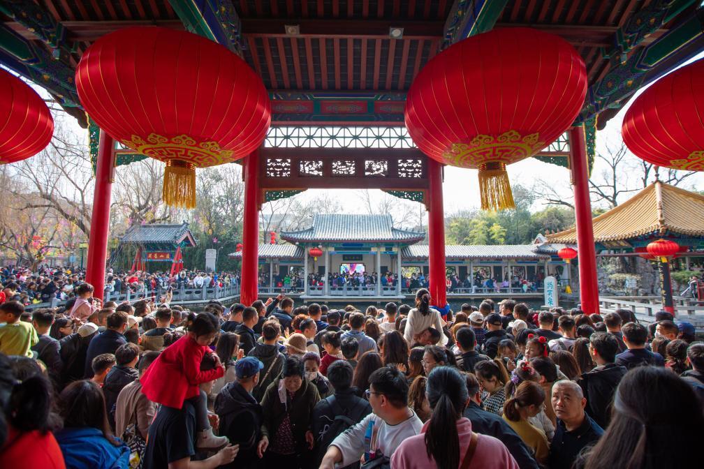 2月14日,游客在山东济南趵突泉景区游玩。春节假期,许多景区迎来客流高峰,文旅消费市场火爆。 新华社发(徐舟 摄)