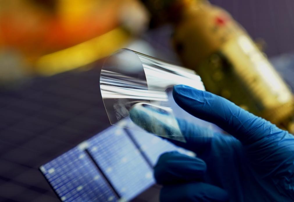 4月12日,河北省秦皇岛经济技术开发区一家特种玻璃企业的工人在展示一款用于航天领域的玻璃产品。新华社记者 杨世尧 摄